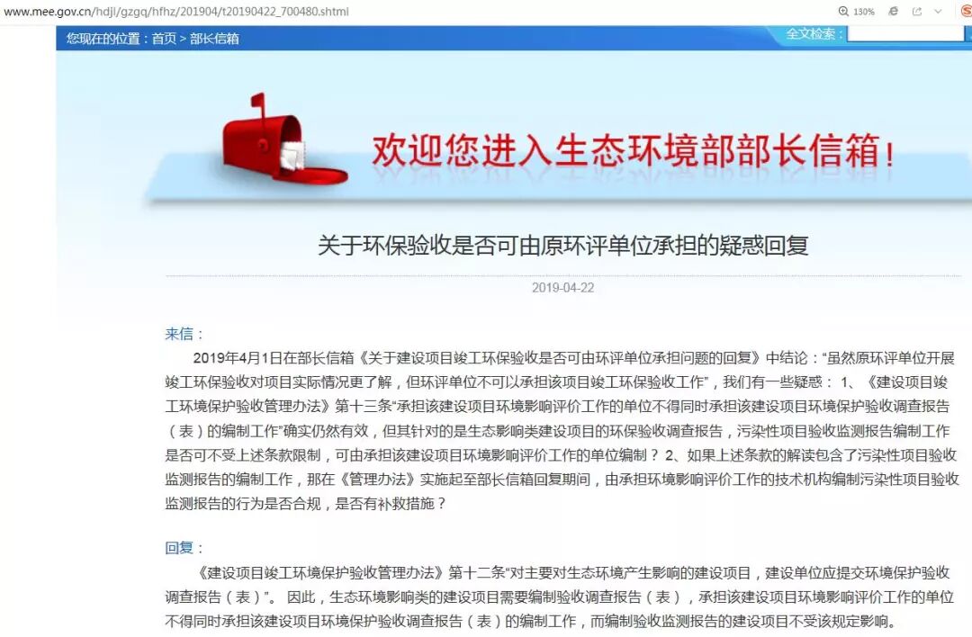 关于环保验收是否可由原环评单位承担的疑惑回复