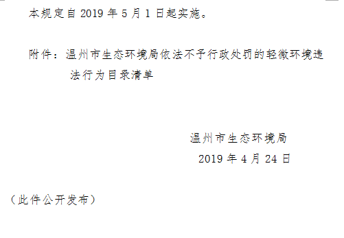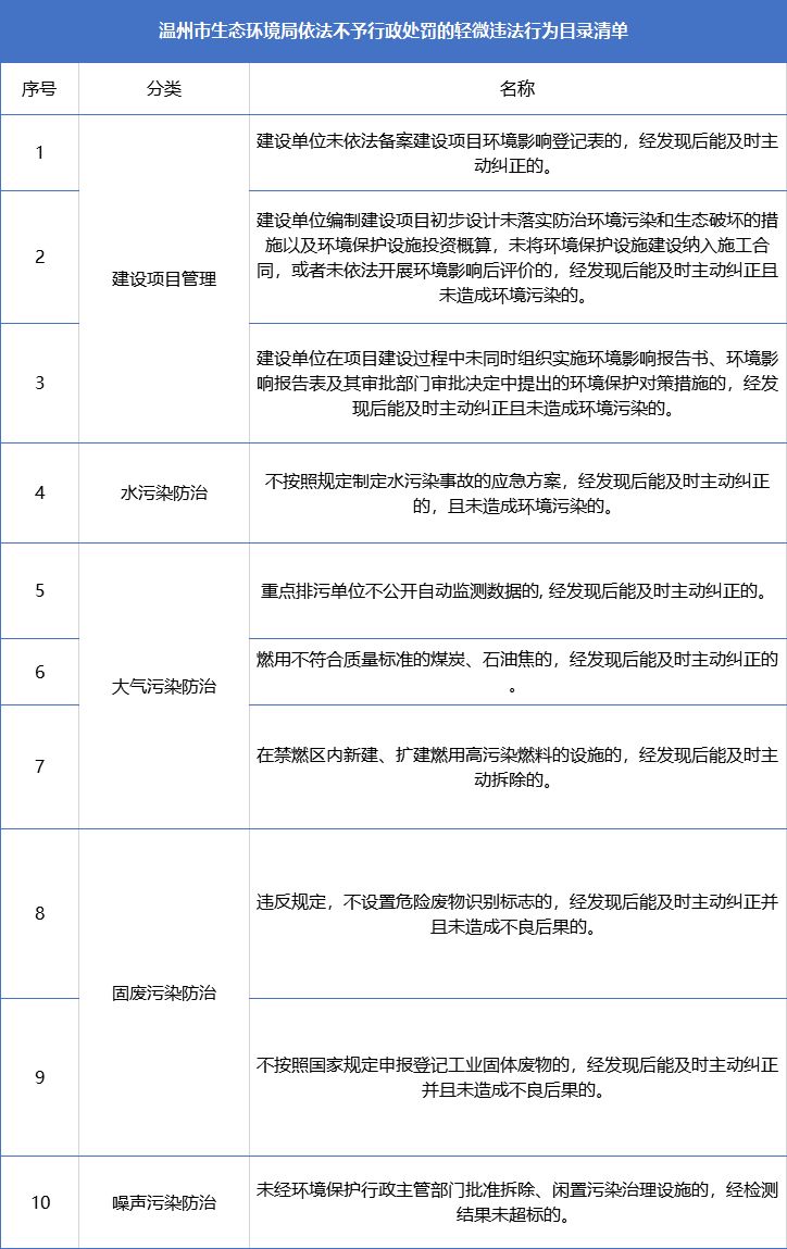 《温州市生态环境局依法不予行政处罚的轻微环境违法行为目录清单》发布!