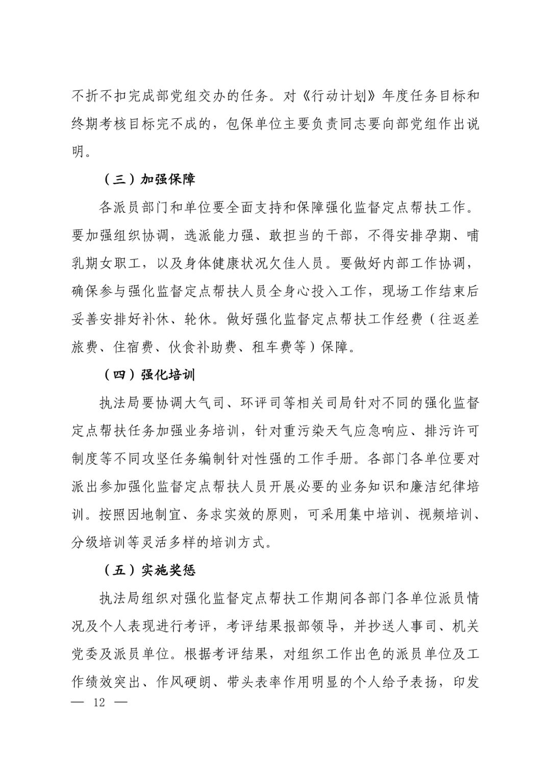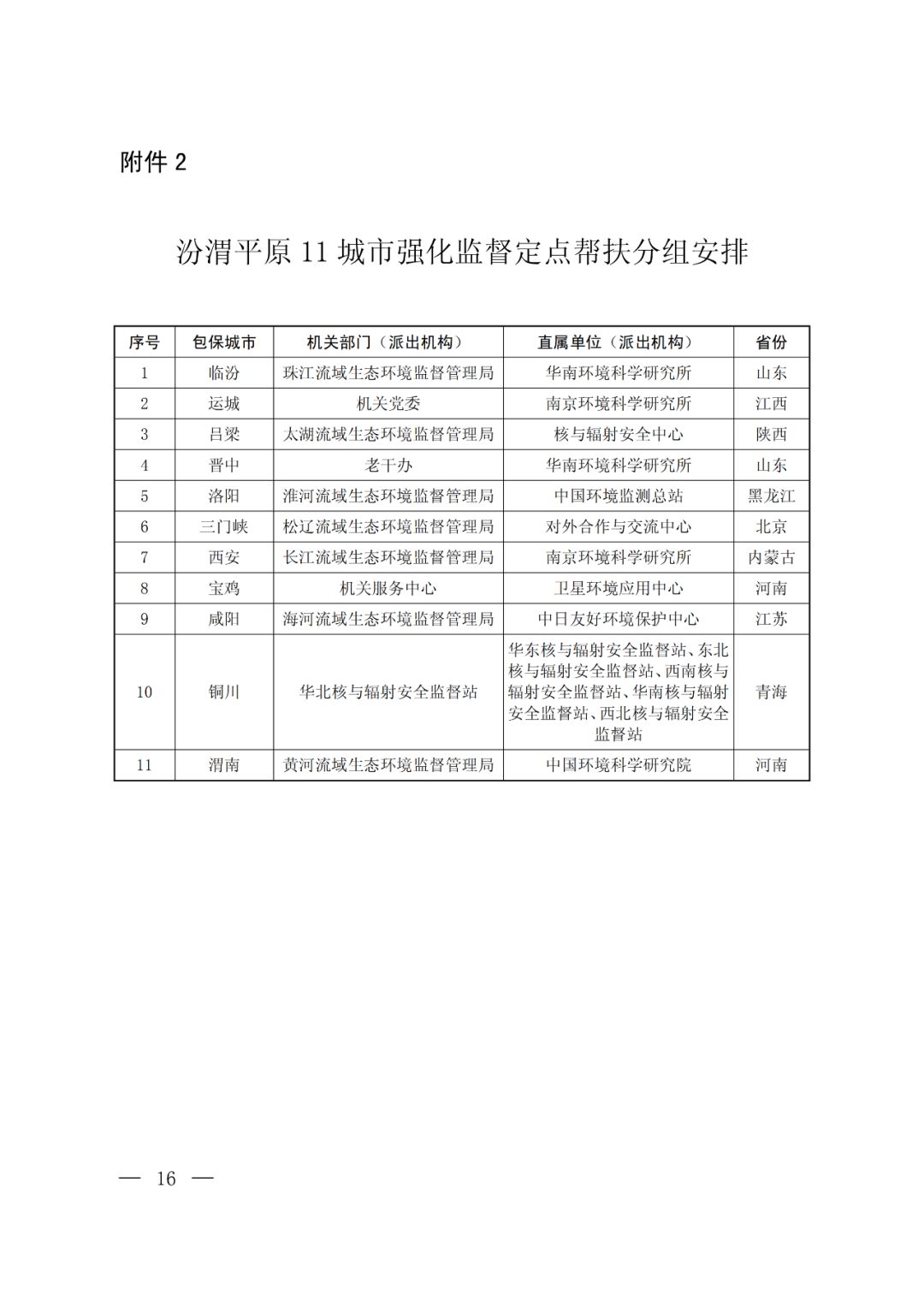 实行部机关(派出机构)、直属单位和省级生态环境部门“三位一体” 共同负责工作机制,由1个部机关部门(派出机构)、1个直属单位以及1个省级生态环境部门共同包保、对口帮扶重点区域的1个城市,并派员组成强化监督定点帮扶工作组。