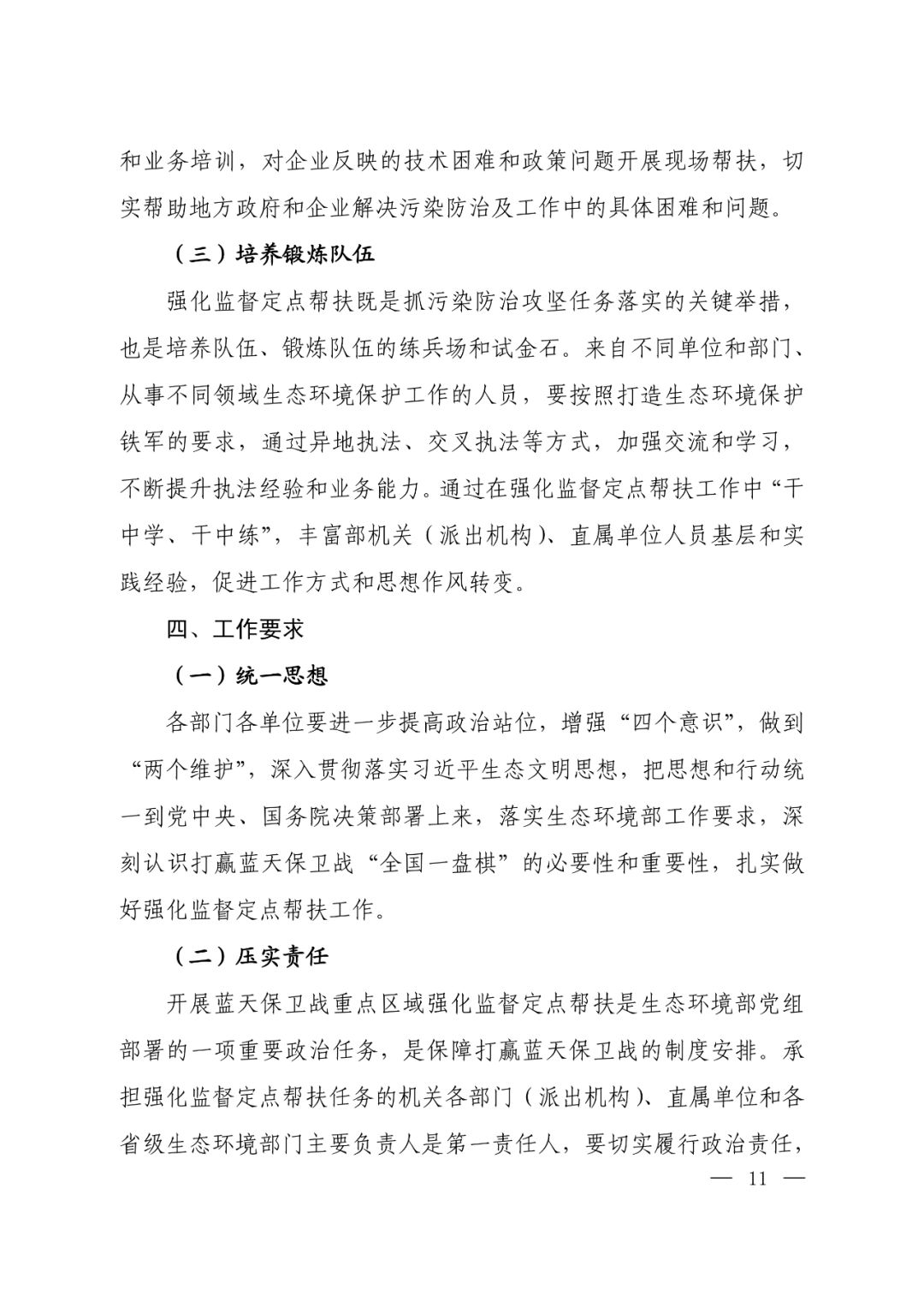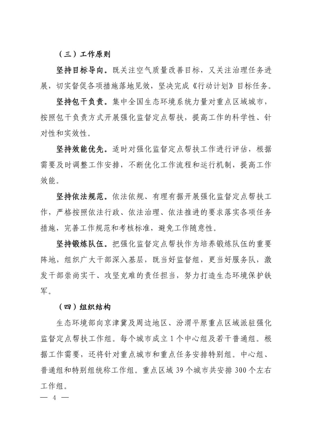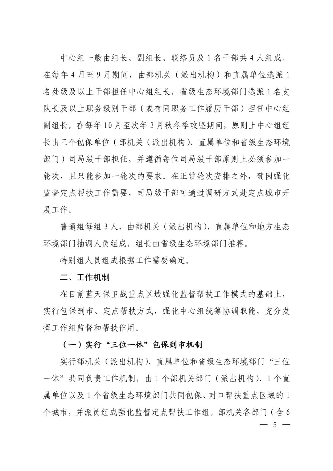 《工作方案》要求,在目前蓝天保卫战重点区域强化监督帮扶工作模式的基础上,实行包保到市、定点帮扶方式,强化中心组统筹协调职能,充分发挥工作组监督和帮扶作用。