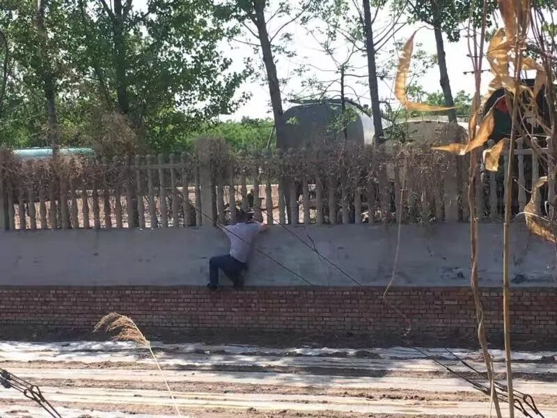为了近距离看清情况,龚贤军绕到德胜纸业的围墙处,奋力一跃,抓住栏杆,摸出手机在缝隙中拍照。“厂里有个罐子,固定在地上,有人把罐车里的液体用泵打入罐子里。”他把发现的情况分享到工作群里。潘松岭也在罐子不远处发现露出地面的不明管口。