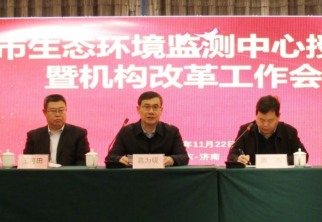 11月22日上午,全省驻市生态环境监测中心授牌仪式暨机构改革工作会议在济南召开。会议深入贯彻落实党的十九届四中全会精神,总结了全省驻市生态环境监测中心体制改革工作情况,对落实好监测中心工作职责,充分发挥好新的监测体制作用,推进全省生态环境监测工作持续健康有序发展进行了安排部署。省生态环境厅一级巡视员葛为砚出席会议并讲话,副厅长周杰主持会议。