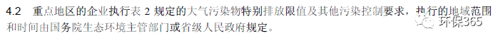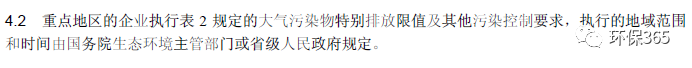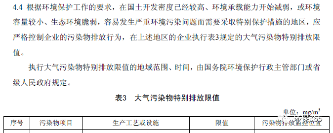 在国土开发密度已经较高、环境承载能力开始减弱,或大气环境容量较小、生态环境脆弱,容易发生严重大气环境污染问题而需要采取特别保护措施的地区,应严格控制企业的污染排放行为,在上述地区的企业执行大气污染物特别排放限值,如下:
