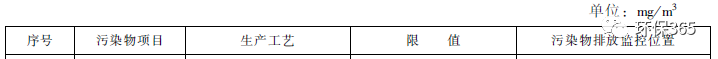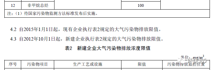 新建企业自2015年7月1日起,现有企业自2017年7月1日起执行的大气污染物排放限值如下: