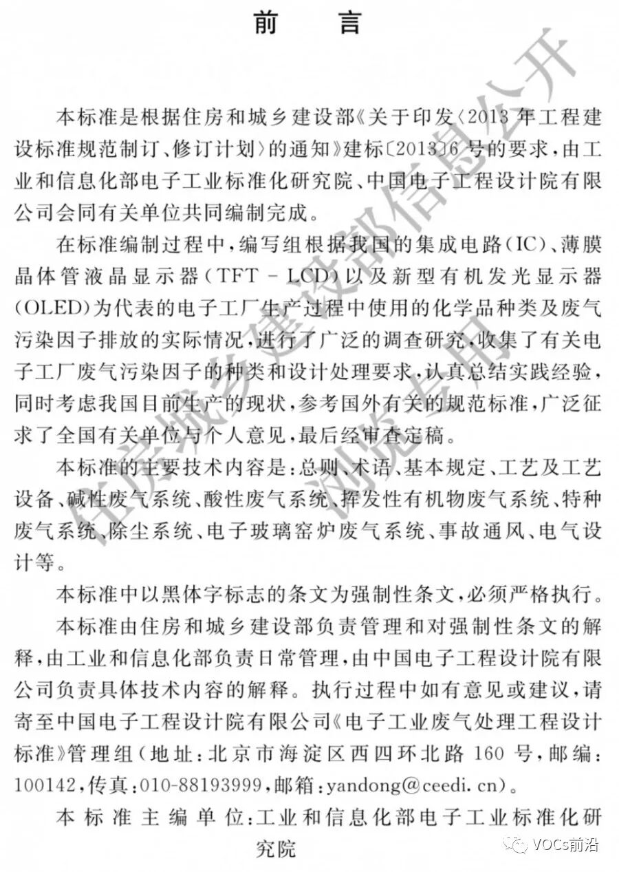 现批准《电子工业废气处理工程设计标准》为国家标准,编号为GB51401-2019,自2020年4月1日起实施。其中,第3.0.3、3.0.6(1)、3.0.8、3.0.10、3.0.17条(款)为强制性条文,必须严格执行。