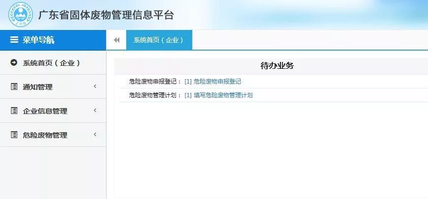 登录广东省固体废物管理平台进行转移计划报批及申请危险废物转移。