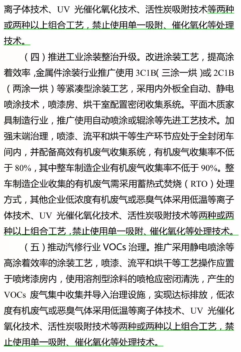 《方案》针对于不同行业的有机废气或恶臭气体要求采取不同的末端主流治理措施进行净化处理,确保稳定达标排放。VOCs前沿(vocs99)注意到,该省级《方案》多次明确强调“采取两种或两种以上组合工艺,禁止使用单一吸附、催化氧化等处理技术”。